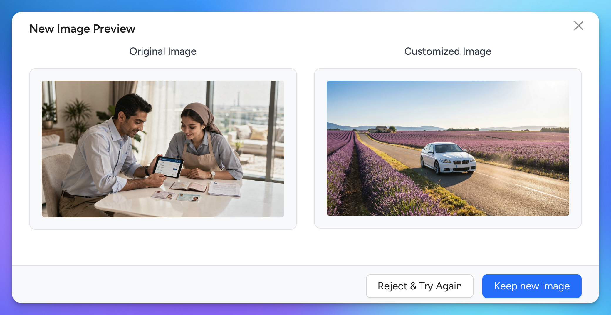 Transform and enhance your images using AI-powered editing tools directly within BlogSEO.